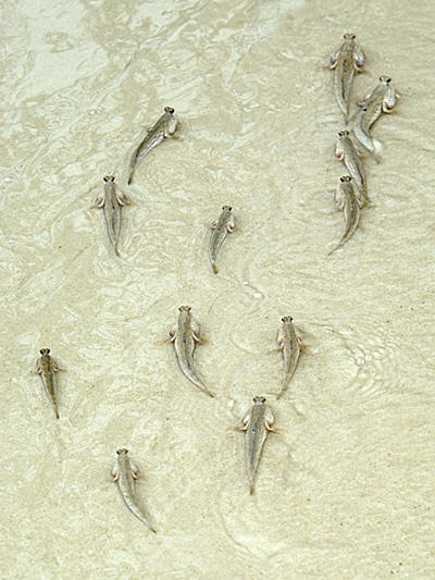 a shoal of over 25 Gold-spotted Mudskippers at Telunas Beach, Pulau Sugi,